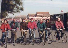 ...het zijn PSO leden die zich op fietsen door het drukke verkeer in de Chinese hoofdstad wagen.