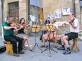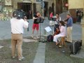 Machiel, Daan, Paul and Merryl play to advertize tonight's concert. They cannot complain about lack of attention! |