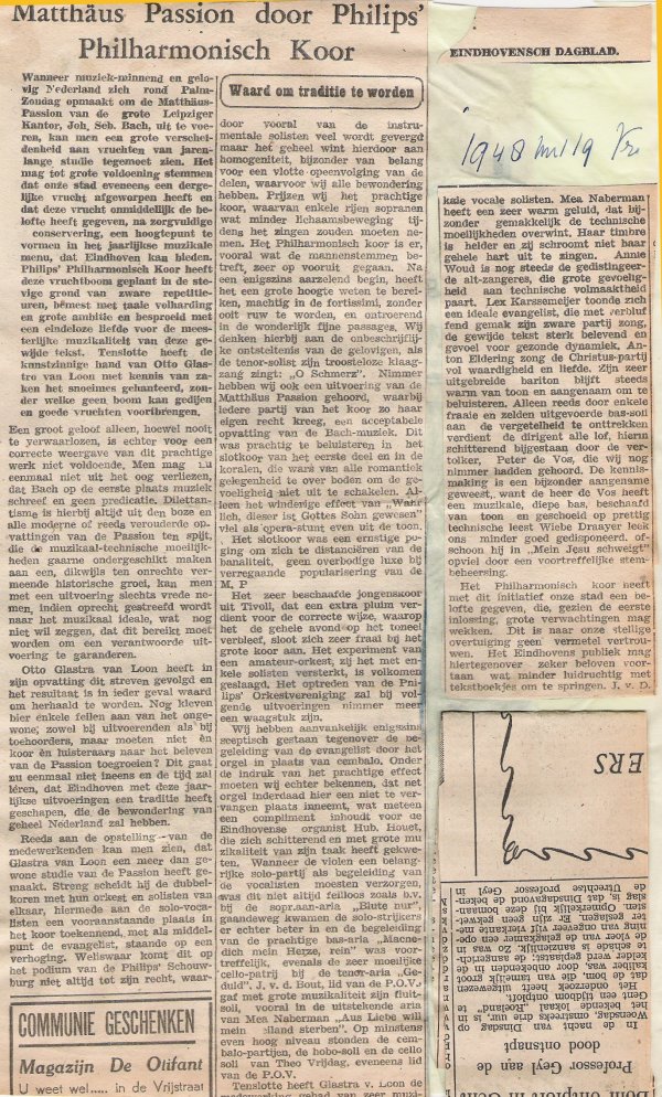 Eindhovensch Dagblad - 19 maart 1948Matthäus Passion door Philips' Philharmonisch Koor