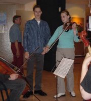 Jussi Jaatinen leidt een repetitie voor het kamermuziekproject.