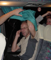 Het lijkt erop dat sommige orkestleden op de terugreis alleen maar willen slapen...
