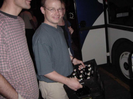 Aankomend penningmeester Stijn Kalkers verzorgt het bier na het concert in het Concertgebouw.