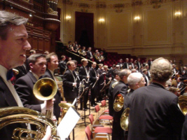 Alle hoorns (ook op de achtergrond) na afloop van de Alpensymfonie.