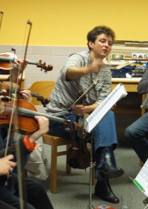 Hilde Denissen leidt de groepsrepetitie van de tweede violen.
