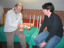 ... terwijl binnen de typische "Belgische" lekkernijen gegeten worden.