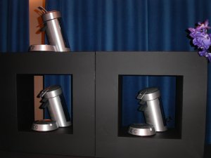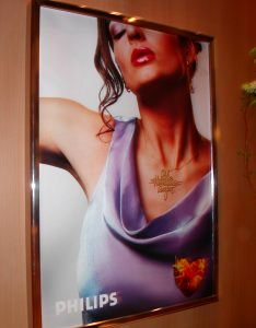 Als altijd staan de nieuwste Philips producten uitgestald. Op de trappen waren drie spiegels te zien, waarvan het onderste deel tevens TV is.