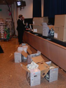 Twee uur voor de eerste gasten organiseren is het nog een rotzooi in de gangen...