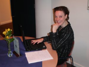 Maayke moest nog snel even haar huiswerk maken tussen de generale en het concert door.