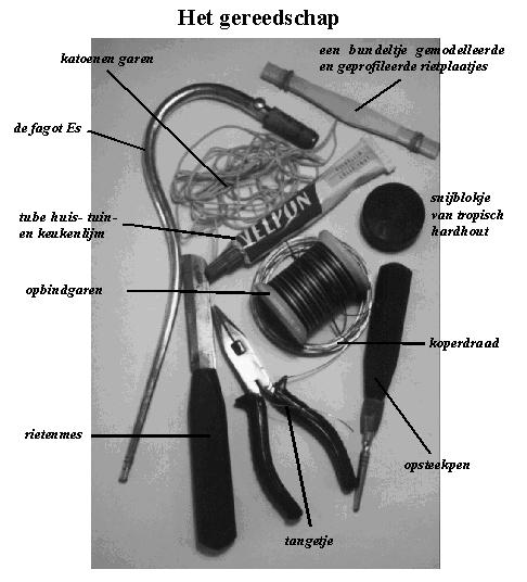 In een apart kadertje heb ik het gereedschap, dat nodig is voor het