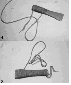 lijmen of lakken van het touwbolletje, om te voorkomen dat het halverwege