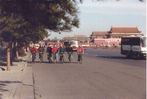 ...het zijn PSO leden die zich op fietsen door het drukke verkeer in de Chinese hoofdstad wagen.