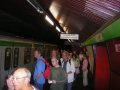 The bus is really stuck, so everybody has to take the subway back to the hotel. |