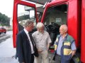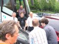 Orchestra managers Antoon (middle) and his brother Gerard (right) talking to busdriver Henk. |