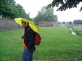 Afterwards everybody waits in the church for the final sprint to the bus - through the pouring rain. |