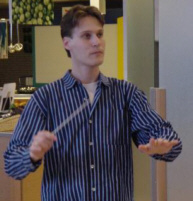 Jussi Jaatinen leidt een repetitie voor het kamermuziekproject.