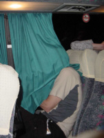 Het lijkt erop dat sommige orkestleden op de terugreis alleen maar willen slapen...