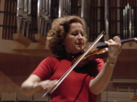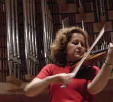 Concertmeester Saskia Luyendijk verstoort de rust door te beginnen met het stemmen.