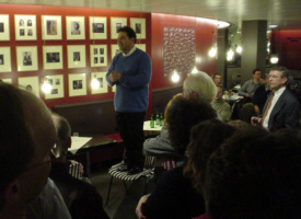Jules houdt een korte toespraak in de artiestenfoyer van het Concertgebouw.