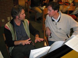 Tjitse Letterie en Eckhart von Hahn bespreken nog wat vioolloopjes....