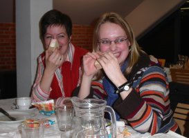 Marielle en Saskia genieten van een ijsje na het eten. Dat was geen standaard onderdeel van het maal, maar speciaal voor ze gekocht door... (zie de nieuwe papieren VHV!)