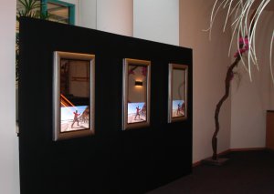 Als altijd staan de nieuwste Philips producten uitgestald. Op de trappen waren drie spiegels te zien, waarvan het onderste deel tevens TV is.