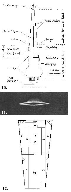 Dat afwerken van een riet is een erg lastig werkje. Hoboïsten vinden over het algemeen dat fagottisten maar rietenslagers zijn, omdat een fagotriet veel groter is en dus ook wat meer kan lijden bij het snijden. Een contrafagotriet vinden hoboïsten overigens helemaal een surfplank, waar al weinig aan te verprutsen valt. Toch is deze indruk niet helemaal een juiste. In figuur 12 staat een rietplattegrondje gegeven, waarin een groot aantal gebiedjes zijn te vinden, en snijden of schuren in al die gebiedjes kan weer een ander effect op het geluid van het riet hebben. Daarnaast kan een riet ook nog eens veranderen door veranderende weersomstandigheden. Geachte lezer, als je dus een ploeterende rietblazer ziet, bedenk dan wat voor ouderwets ambachtswerk daar wordt geleverd.